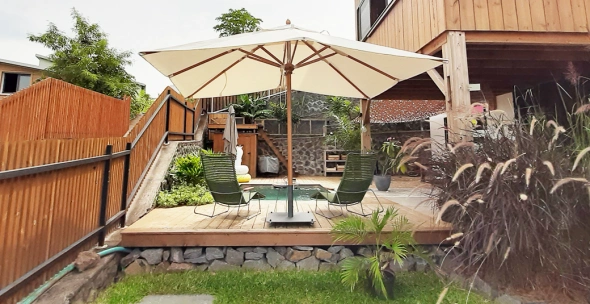 Lors de l'aménagement de votre maison n'oubliez pas votre espace extérieur : nous avons des solutions sur-mesure afin de créer une nouvelle pièce à vivre même sous un climat tropical ! VOTRE SHOWROOM CHANGE SES HORAIRES : * DU MARDI AU VENDREDI DE 9H