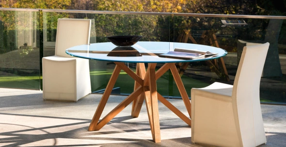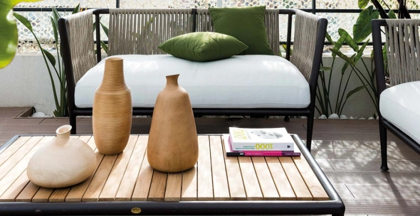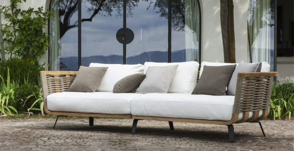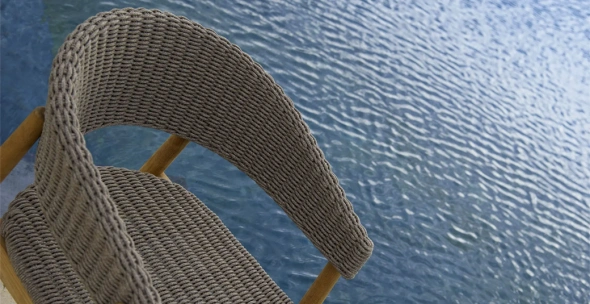 Découvrez dans notre Showroom le nouveau fauteuil Pevero Unopiù aux lignes envoûtantes grâces aux sections de teck circulaires et à la corde en polyoléfine très résistante aux éléments extérieurs. Un fauteuil parfait pour votre varangue, votre jardin
